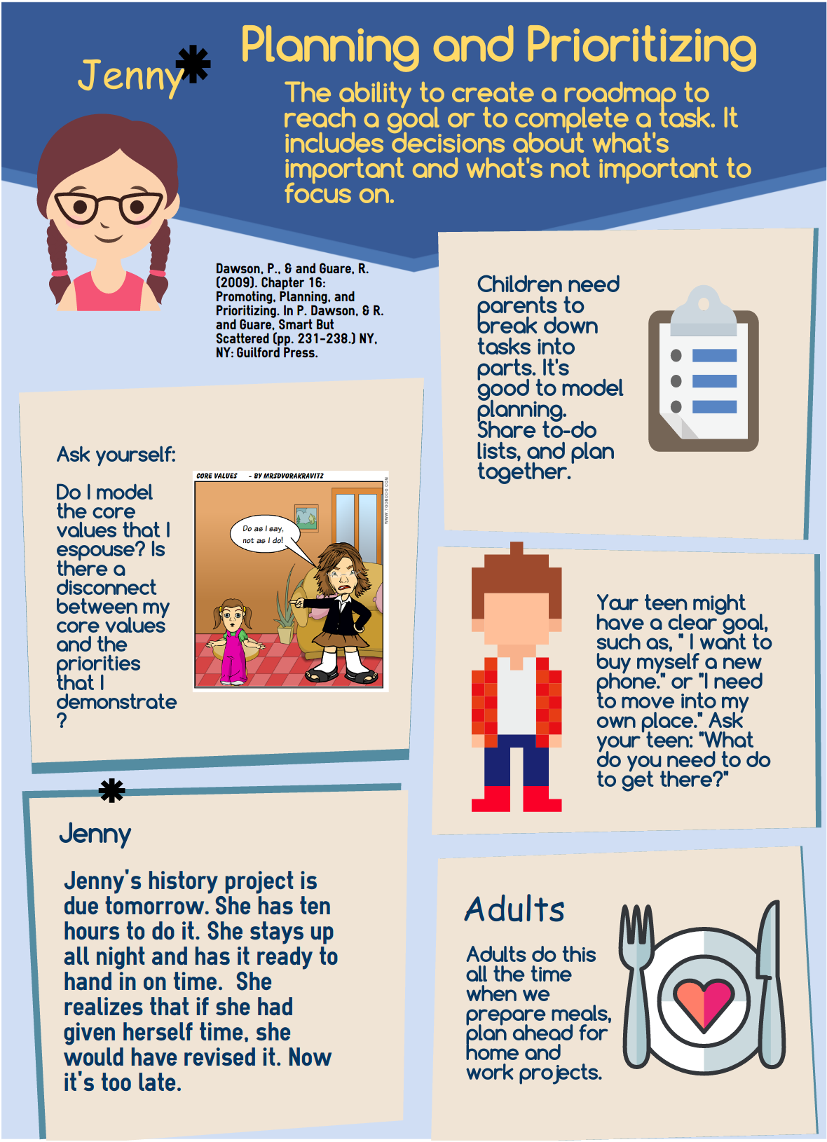 Dawson, P., & Guare, R. (2009). Promoting, Planning, and Prioritizing. In P. Dawson, & R. Guare, Smart But Scattered (pp. 231-238). NY: Guilford Publications.
